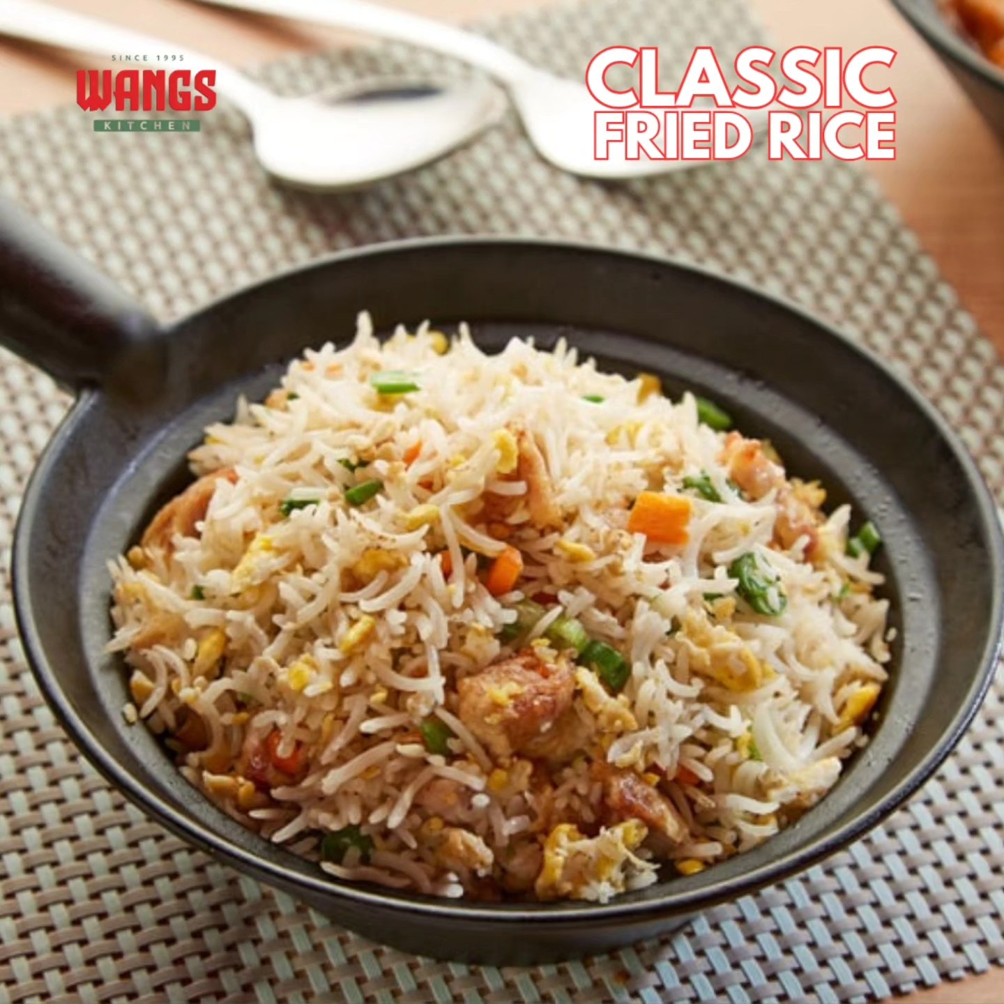 Garlic lovers, rejoice! Wang's Chicken Chilli Garlic Fried Rice is packed with garlic flavor and spicy chilli peppers. Every bite is a burst of savory goodness.